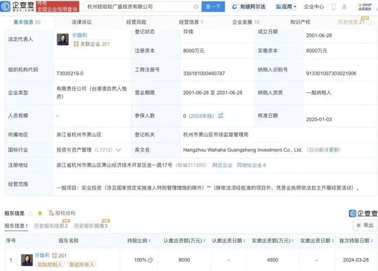 2024年8月,宗馥莉正式继承了父亲持有的娃哈哈集团29.4%股权,成为仅次于杭州上城文商旅投资控股集团(持股46%)的第二大股东。