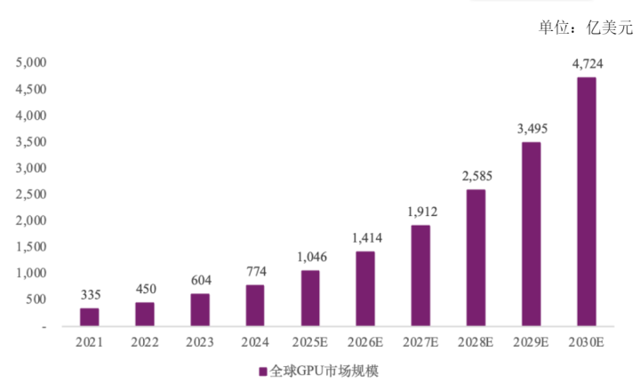 根据VerifiedMarketResearch的数据,2024年全球GPU市场规模为773.9亿美元,2030年有望达到4,724.5亿美元,2024—2030年的复合增长率高达35.19%,呈现强劲的增长态势。